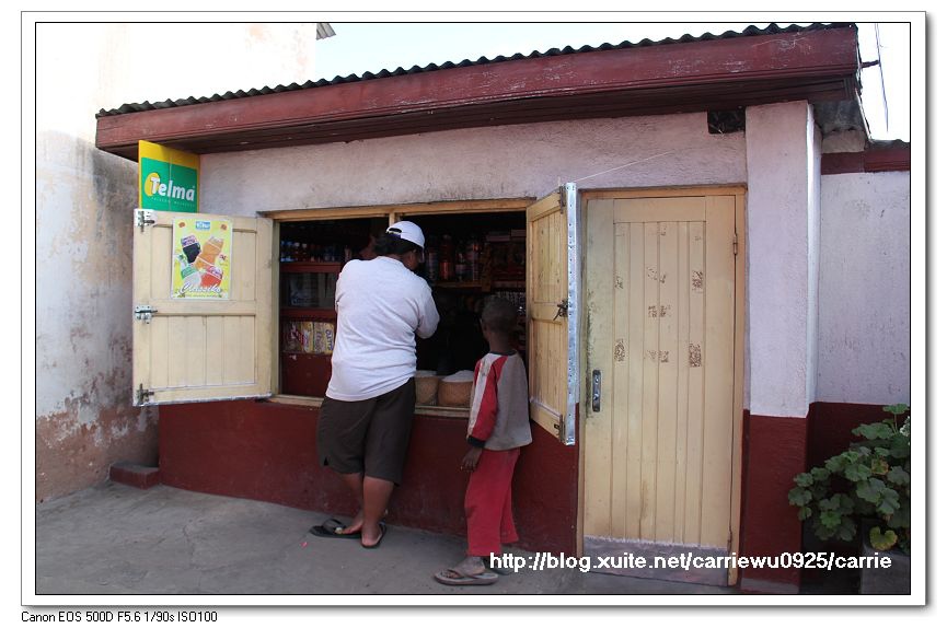 到〔女王宮〕之前,一定會先駐足在這個點,居高臨下俯瞰整個安塔那那利佛Antananarivo。一下車,當地導遊Michael做了一個頗奇怪的舉動,就是在路邊小雜貨店買了些巧克力給這著白色洋裝的女孩,原來這女孩類似當地的小太妹,會騷擾觀光客,Michael其實是好意請這位女孩不要騷擾我們,但女孩不領情,居然還來要求團友買其他東西給她,團友不要,小女孩還惡言相向,讓Carrie非常驚訝,同時也理解我們作客他鄉,一定要特別注意對待當地人的舉止,無謂的施捨反而會讓當地人純真心被污染,像這位小女孩會主動乞討要東西,很可能是被觀光客教壞的。