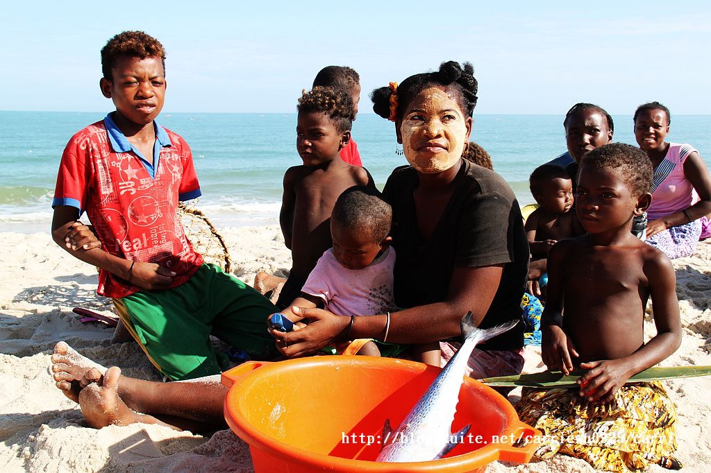 和氣的小賣店一家人,對我們露出開心的笑容。傳統市集是用很簡單的木頭和鐵皮搭建,底下就是一個個攤位,頭上頂著重物的婦女,男人、老人和小孩,還有傳統的早餐鋪,騎腳踏車的少年,很陽春的公車站牌,人力車及車伕……,這是一幅很典型的馬達加斯加鄉村市集風情畫。