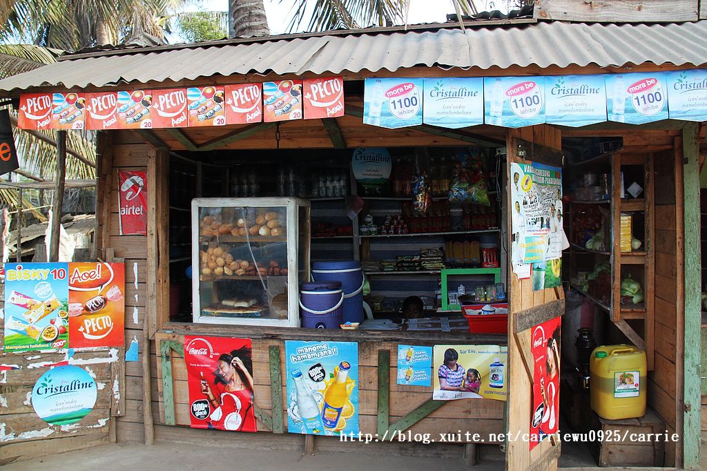 出了機場,莫三比克海峽Mozambique Channel的Kimony海灘Kimony Beach,經過當地市集,就停車下來買些水果。傳統小賣店就是長這個樣子,玻璃櫃裡擺的是法國麵包,感受到從前法國殖民地的遺風,番茄、洋蔥、大蒜、薑,都是有機種植,非常好吃喔!