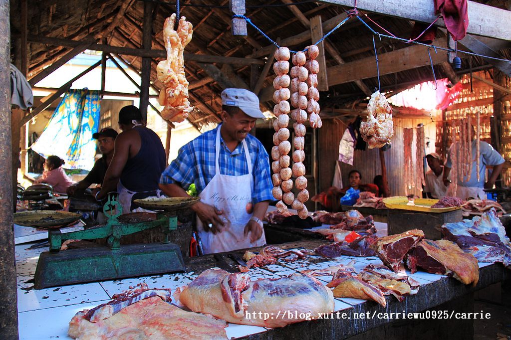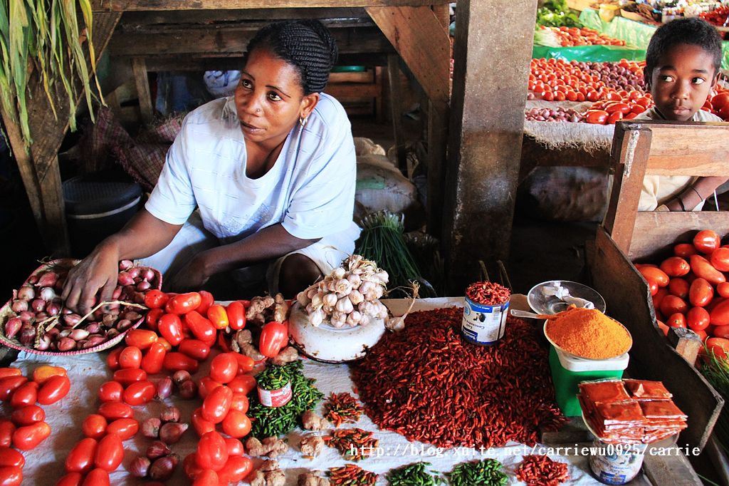穆隆達瓦Morondava的傳統菜市場,雖然建築物蠻簡陋,現場衛生不佳,蒼蠅滿天飛舞,各種生鮮和汗水混雜的味道不好聞,但卻充滿鬧熱滾滾的活力,在這裡買東西的人們,開心地擠著、笑著、討價還價著,我們還可以拿糖果和小販以物易物,一顆糖果換一顆番茄,傳統菜市場真是個值得一探究竟,感受當地人們生活特色的好地方!